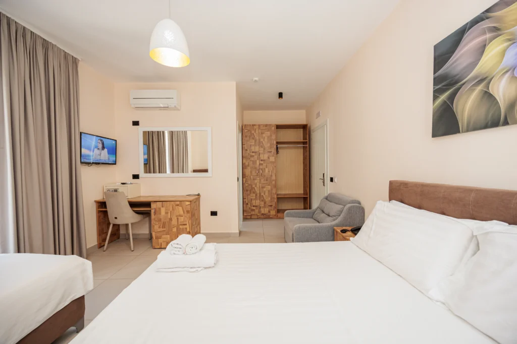 Në Hotel Benelux, çdo dhomë është një oazë e përsosur, ku komoditeti dhe eleganca bashkohen për t’ju ofruar një përvojë të paharrueshme. Pamje mahnitëse, një ambient i jashtëzakonshëm – gjithçka që ju duhet për të ndier gjithmonë veten si në shtëpi.